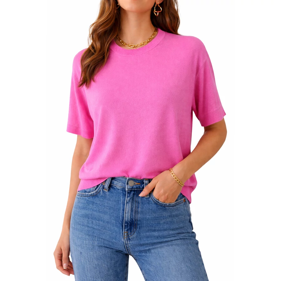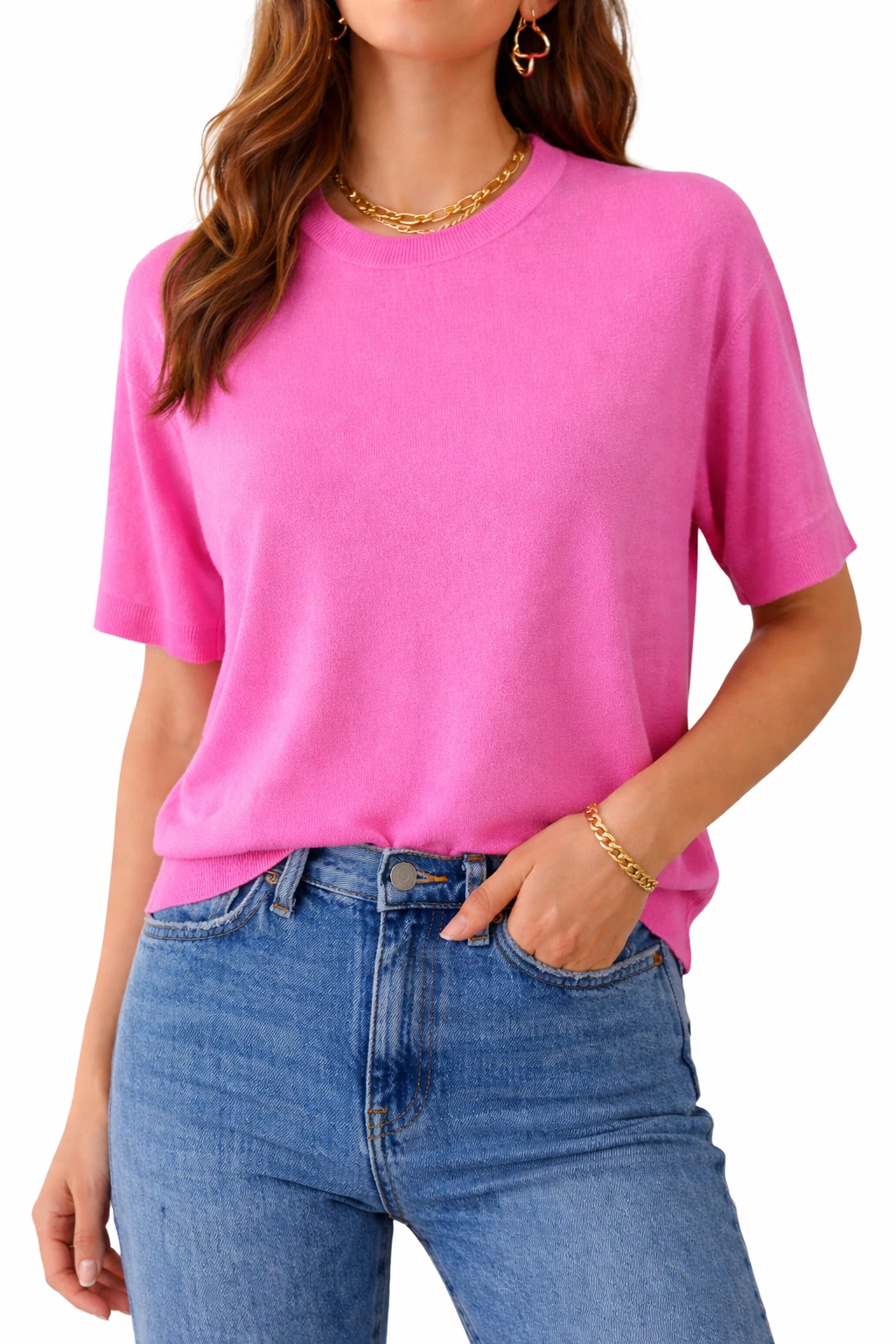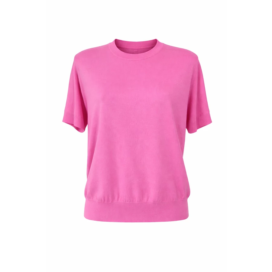 Letisztult és kényelmes Imperial női rövid ujjú pulóver élénk rózsaszín árnyalatban. Puha, finom kötött anyaga tökéletes választás hétköznapi és elegáns szettekhez is. Modern alapdarab, ami feldobja a megjelenésed.