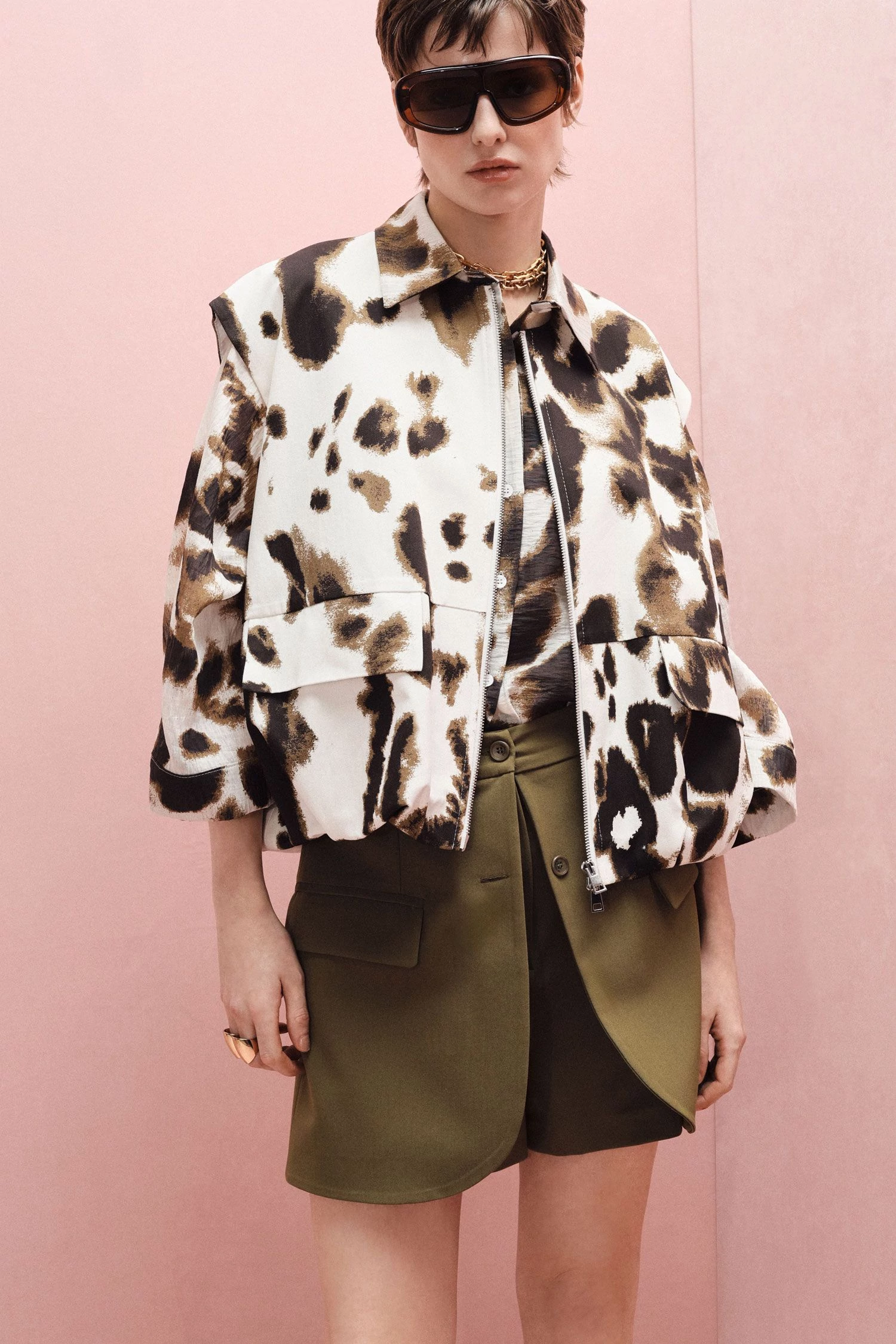 Ujjatlan, mintás mellény elöl cipzáras záródással.