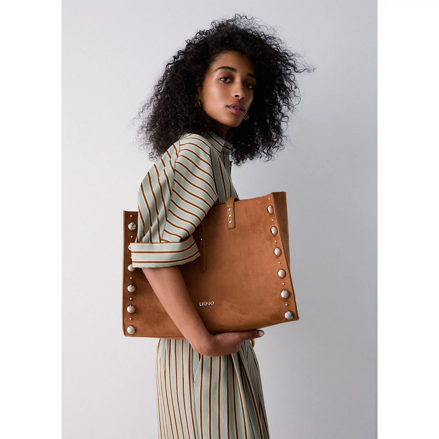 Karakteres és divatos Liu Jo kézitáska, amelyet a különleges szegecses díszítés tesz igazán egyedivé. Strukturált formája és tágas belső kialakítása ideális a mindennapi használatra. Stílusos választás, ha szeretnél egy feltűnő, mégis elegáns kiegészítőt.