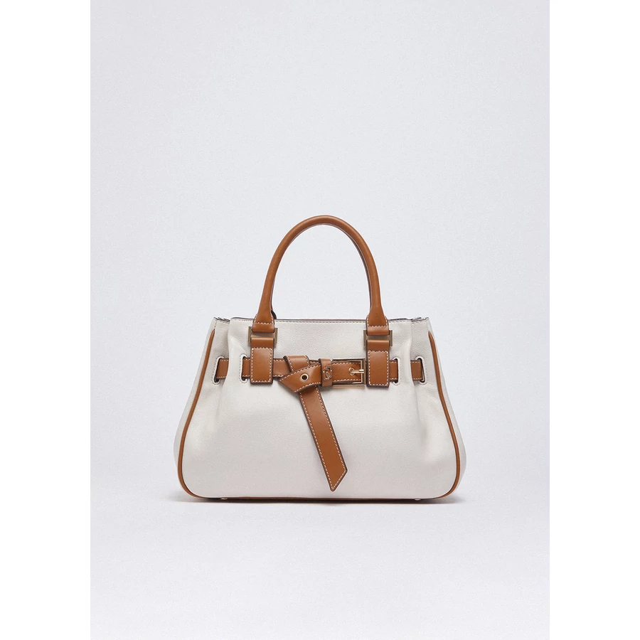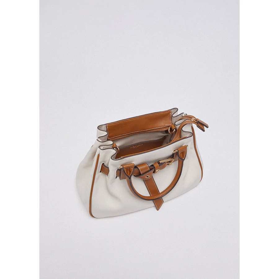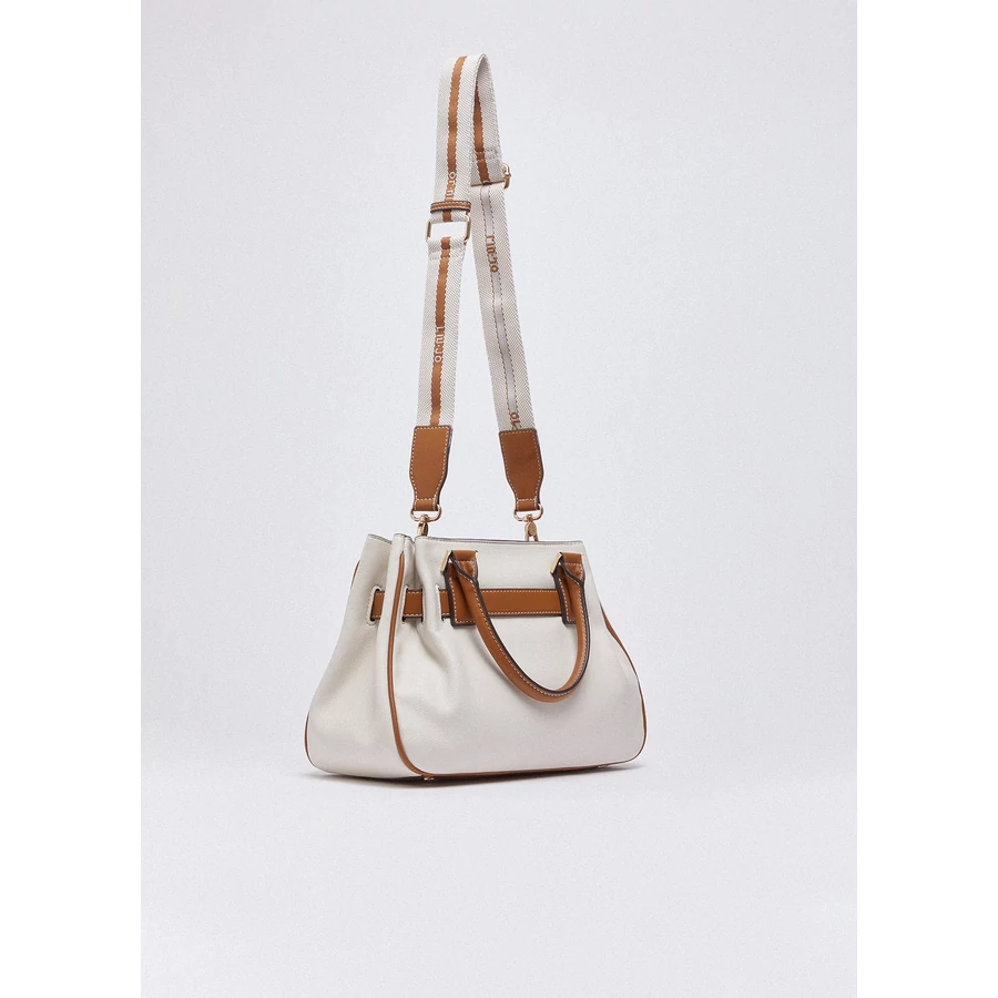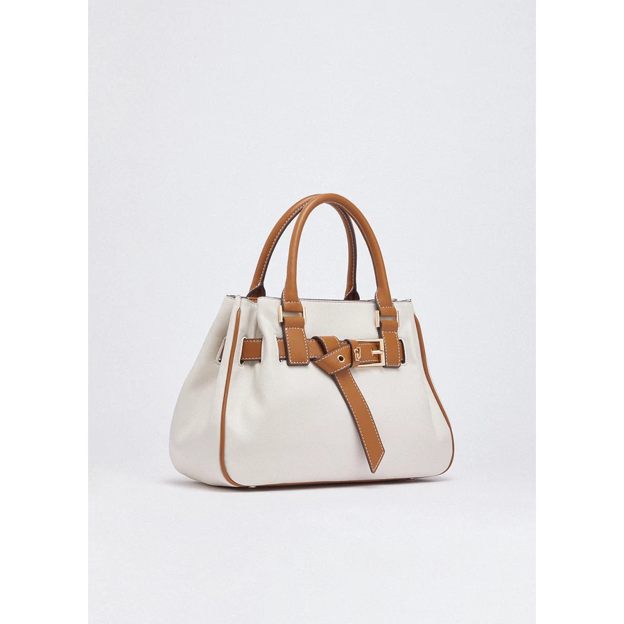 Elegáns megjelenésű Liu Jo kézitáska világos alapszínnel és kontrasztos barna részletekkel. Az övhatású díszítés kifinomult karaktert ad a táskának, miközben praktikus mérete ideálissá teszi mindennapi használatra. Tökéletes választás városi outfitekhez, ahol a nőies elegancia és a funkcionalitás találkozik.