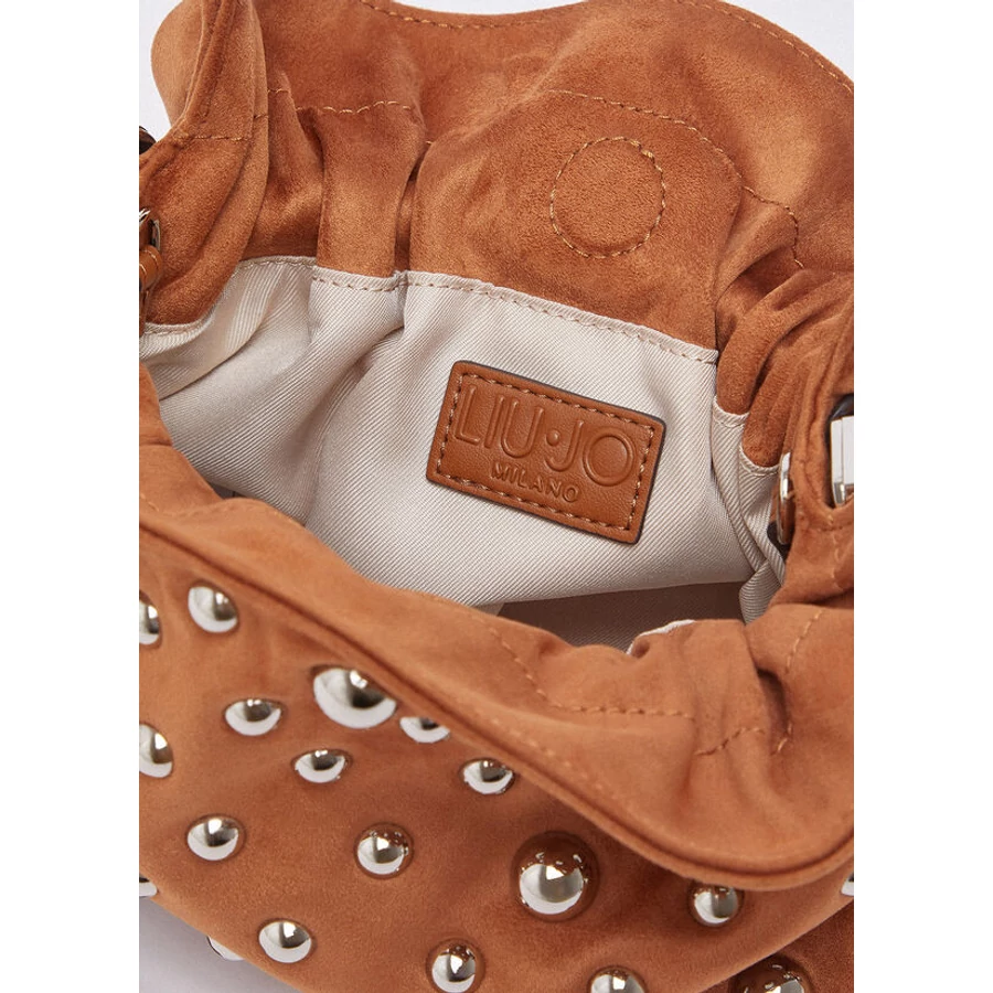 Karakteres Liu Jo kézitáska szegecses díszítéssel, amely azonnal magára vonja a figyelmet. A strukturált forma és a meleg barna szín modern, mégis időtálló megjelenést biztosít. Tökéletes kiegészítő, ha egy vagányabb, mégis nőies darabra vágysz.