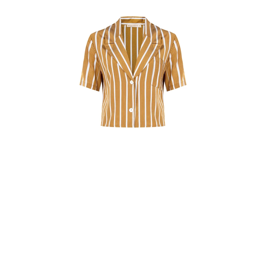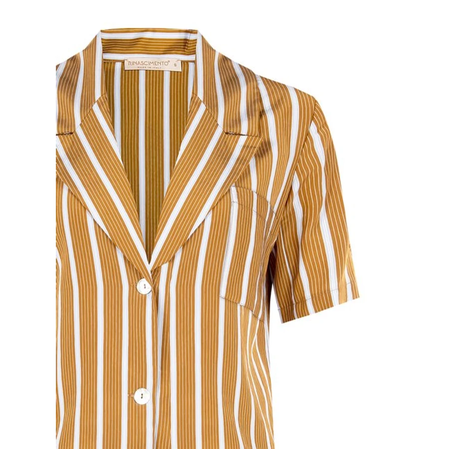 Rinascimento letisztult szabás és a karakteres csíkos minta teszi igazán különlegessé ezt a felsőt. Könnyed anyaga és rövid fazonja ideális választás nyári napokra, miközben a galléros rész egy kis eleganciát visz a megjelenésbe. Laza, mégis összeszedett outfit alapdarabja.