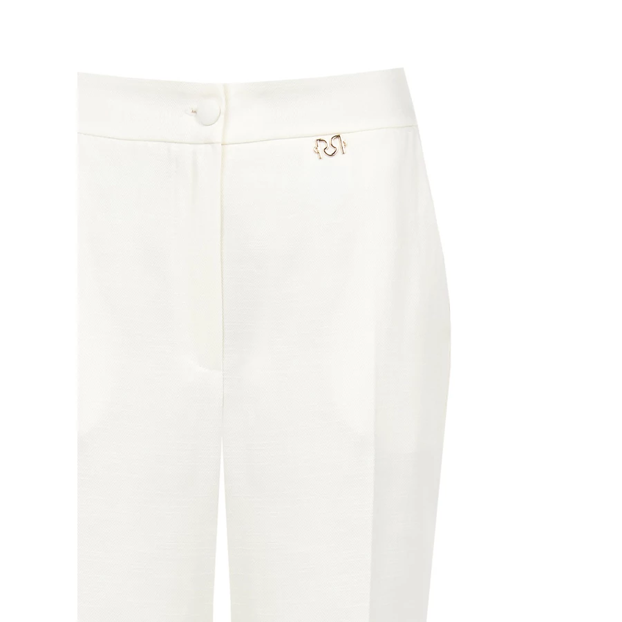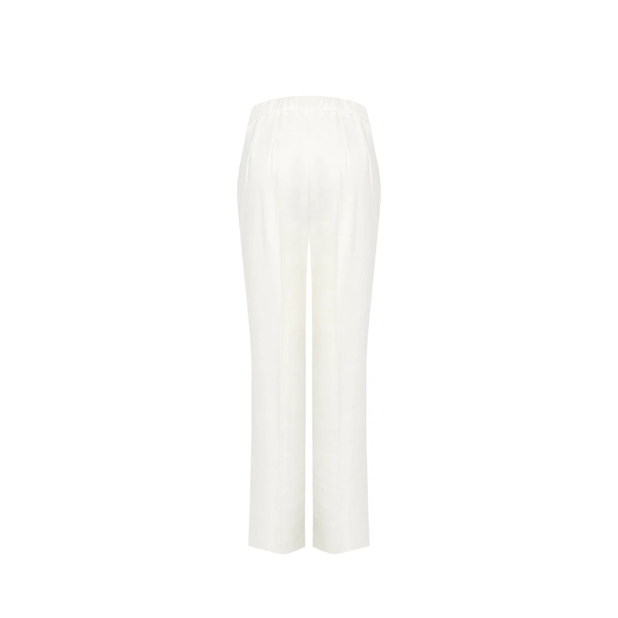 Fehér, egyenes szárú elegáns nadrág letisztult vonalvezetéssel. Klasszikus szabású, irodai vagy alkalmi megjelenéshez ajánlott. Tökéletes választás irodai viselethez, alkalmi eseményekhez vagy stílusos hétköznapi megjelenéshez.