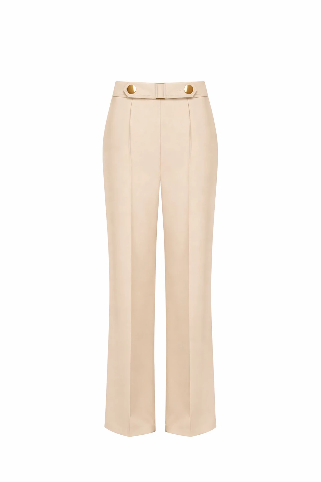 Elegáns bézs női nadrág egyenes szárú szabással, amely kényelmes viseletet és kifinomult megjelenést kínál a mindennapokra. Ideális választás blézerrel összeállítva.