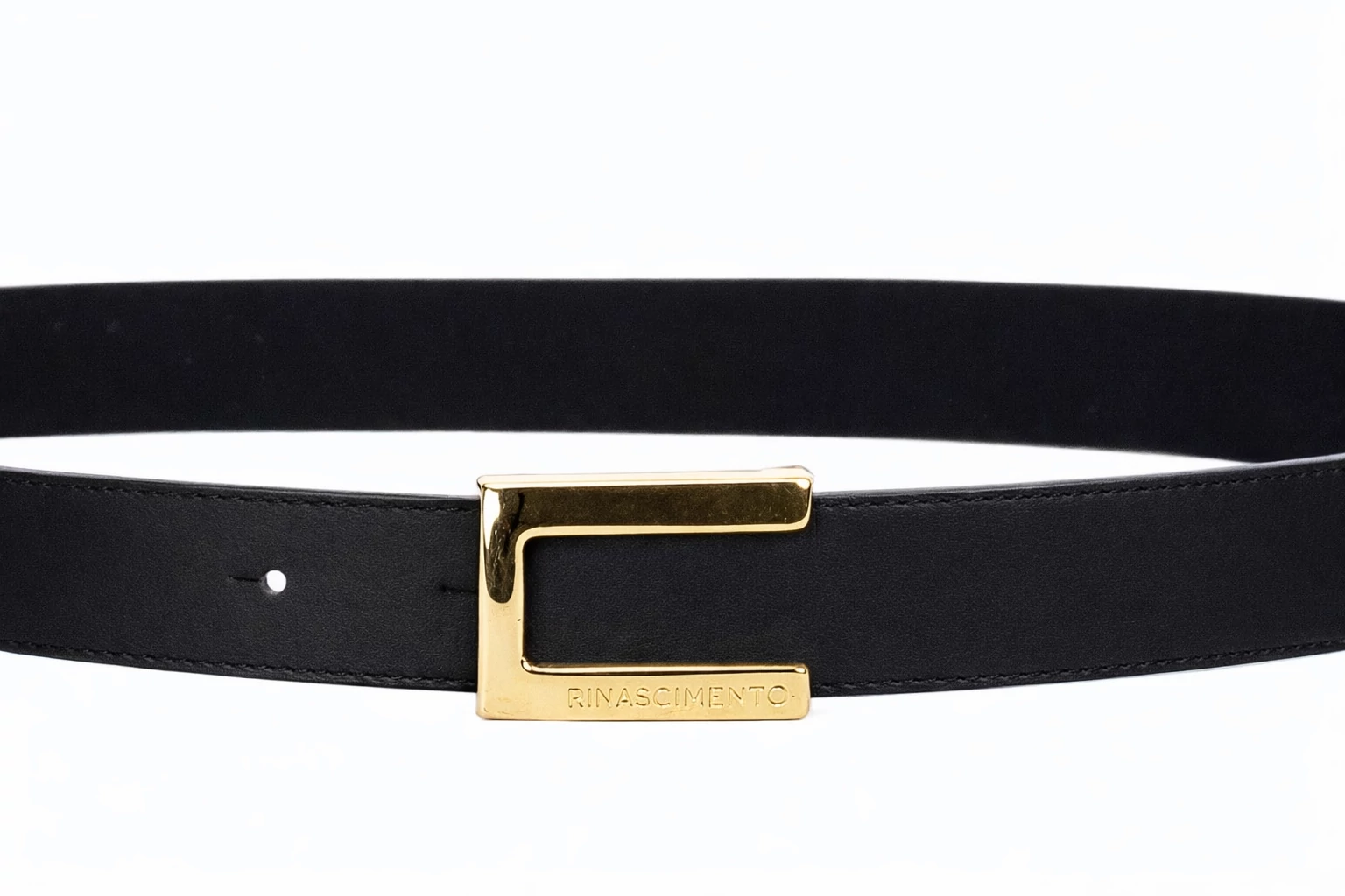 Letisztult feketenői öv modern arany csattal, amely elegáns hangsúlyt ad ruháknak és nadrágoknak egyaránt. Minimalista dizájnja könnyen kombinálható különböző stílusokkal.