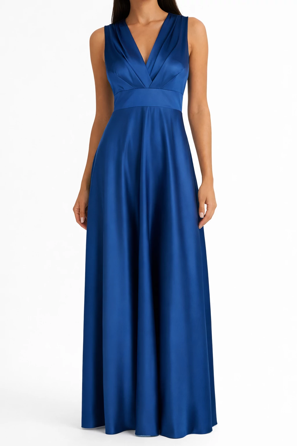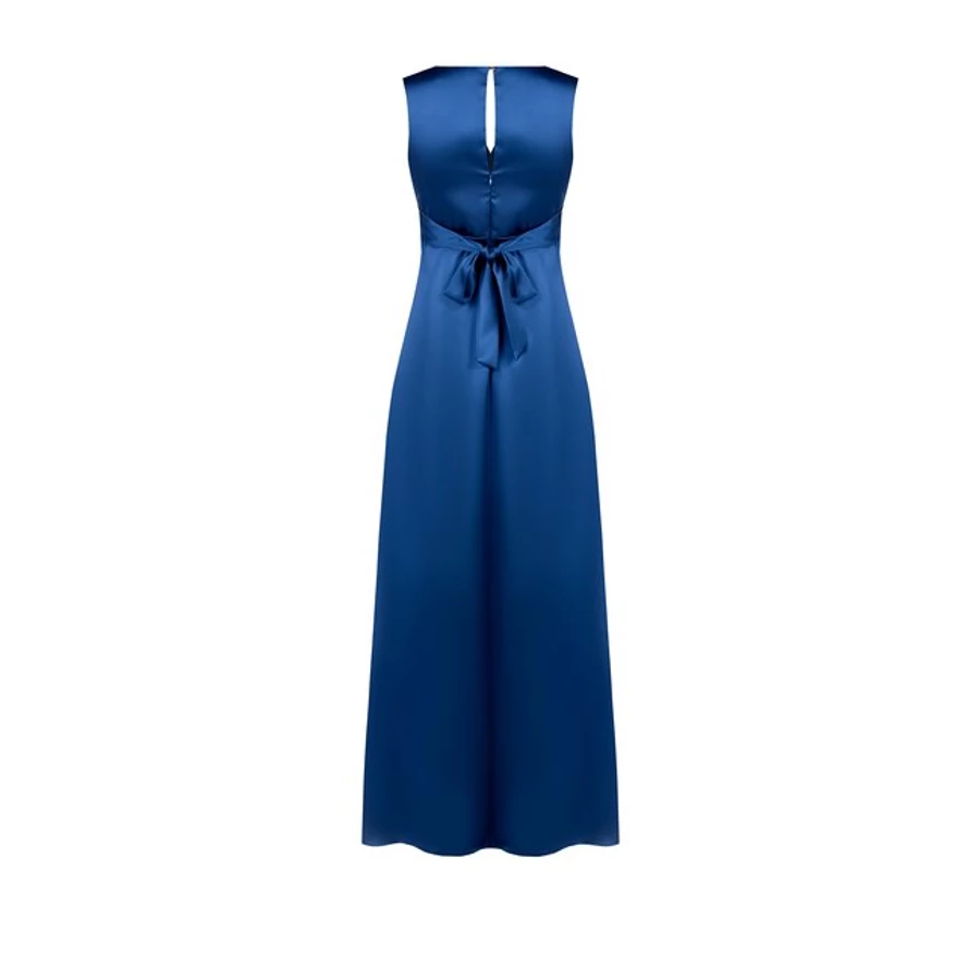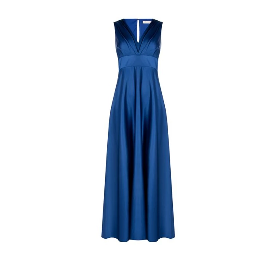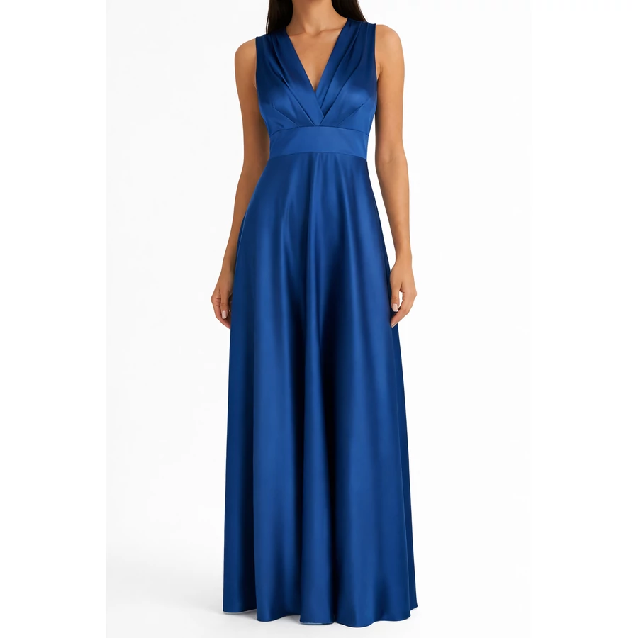 Királykék, hosszú, mély V-nyakú alkalmi ruha bő szoknyarésszel. Látványos darab, amely esti eseményekre és ünnepi alkalmakra tökéletes. Tökéletes választás irodai viselethez, alkalmi eseményekhez vagy stílusos hétköznapi megjelenéshez.