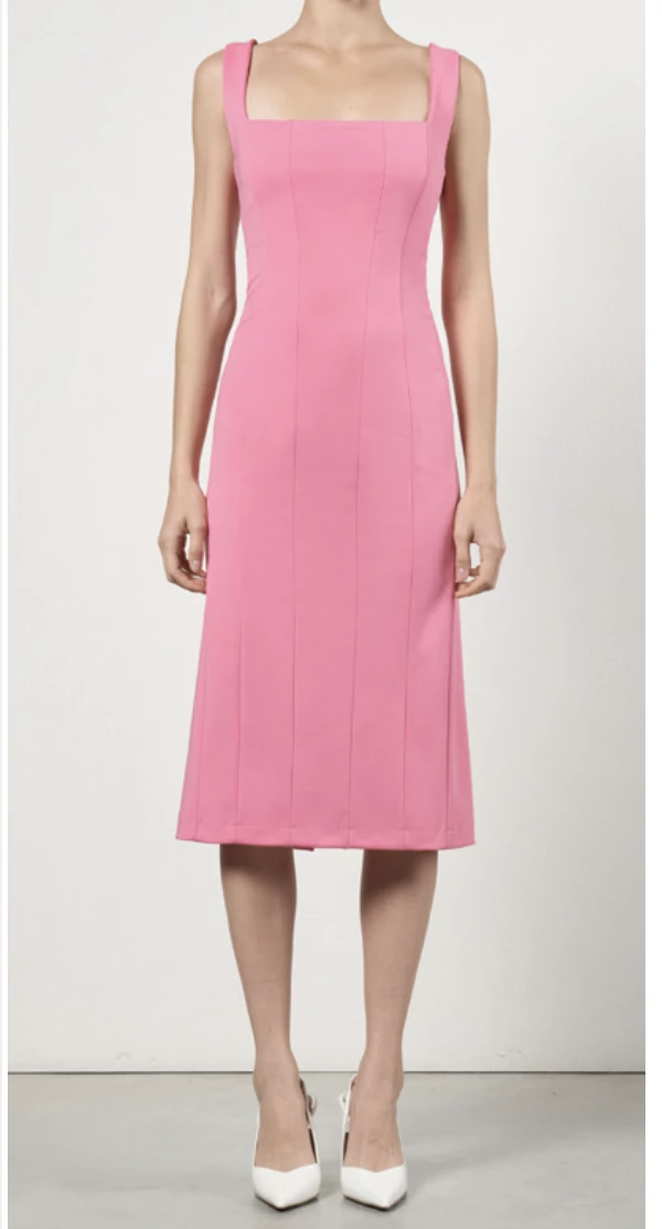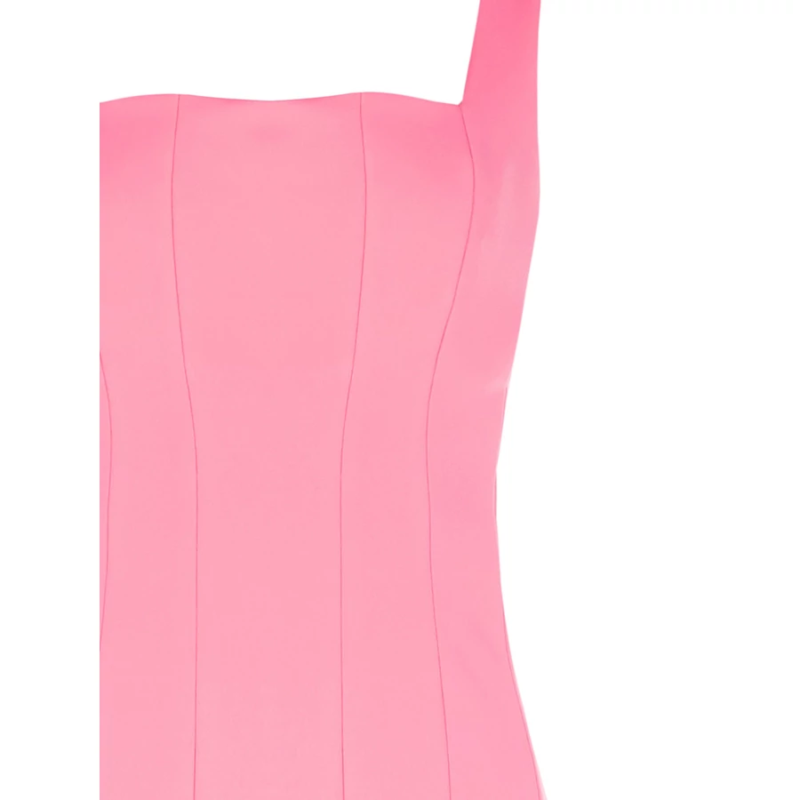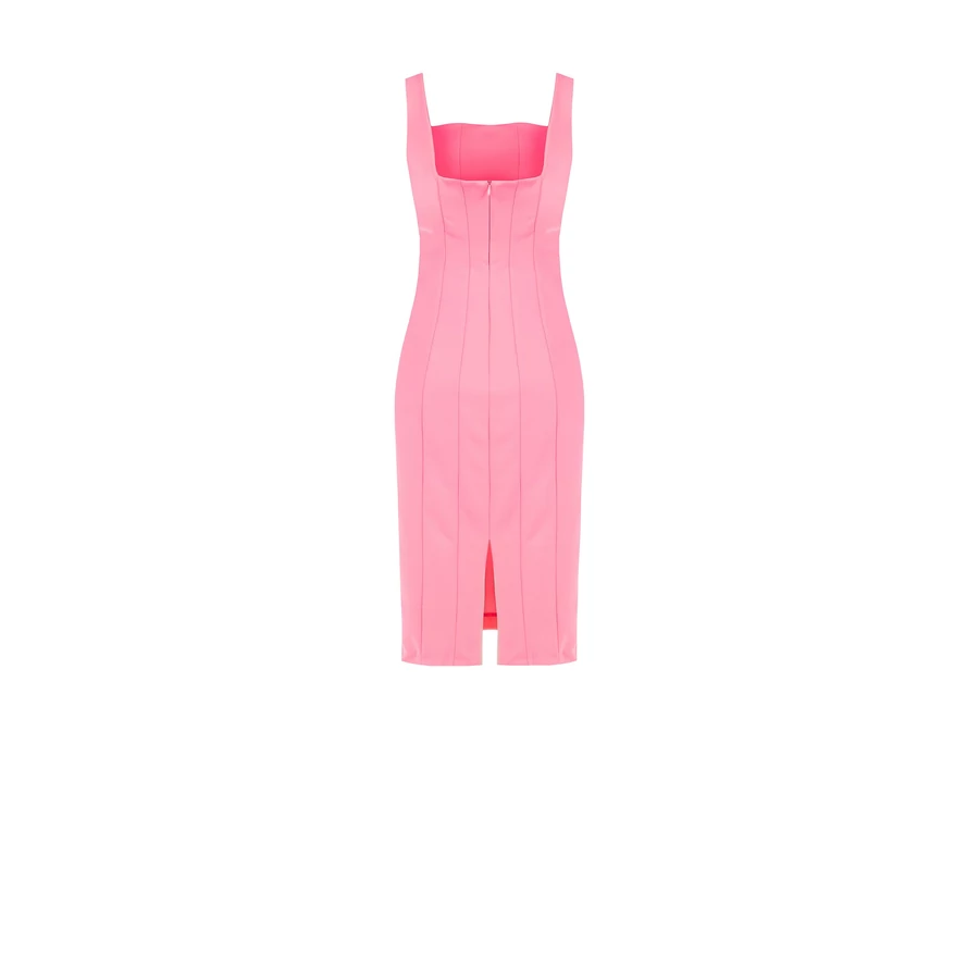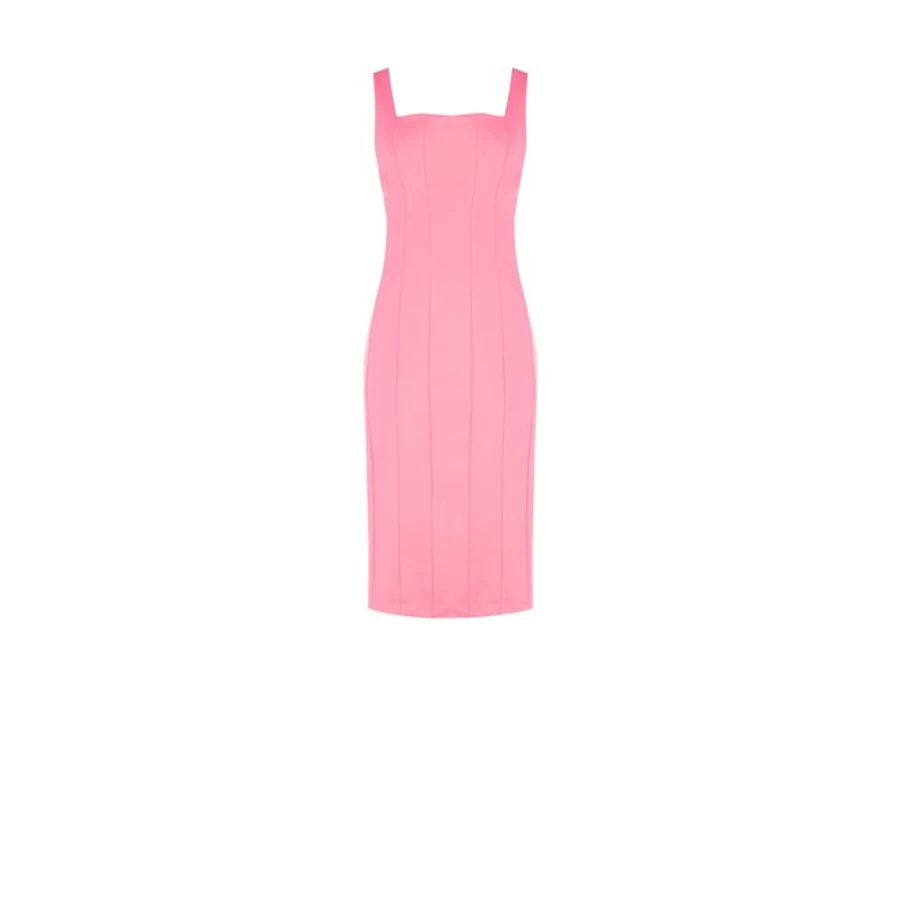 Rózsaszín, testhez simuló női ruha modern pántos kialakítással. Fiatalos, nőies darab, amely alkalmi eseményeken is megállja a helyét. Tökéletes választás irodai viselethez, alkalmi eseményekhez vagy stílusos hétköznapi megjelenéshez.