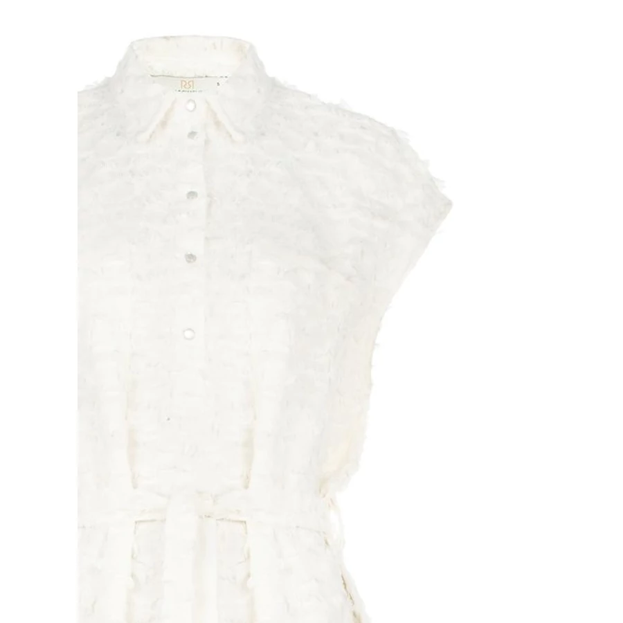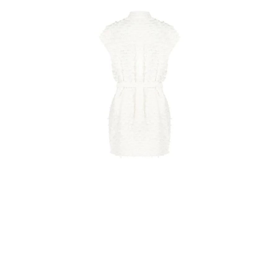 Különleges textúrájú fehér női ruha övvel, amely nőies szabásával és elegáns megjelenésével ideális alkalmi eseményekre. Légies kialakítása kifinomult stílust sugall.