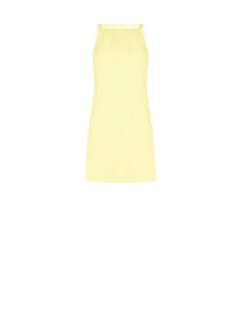 Friss citromsárga ujjatlan női ruha letisztult szabással, amely üde és nőies megjelenést biztosít a tavaszi–nyári időszakban. Könnyed anyaga kényelmes viseletet nyújt.