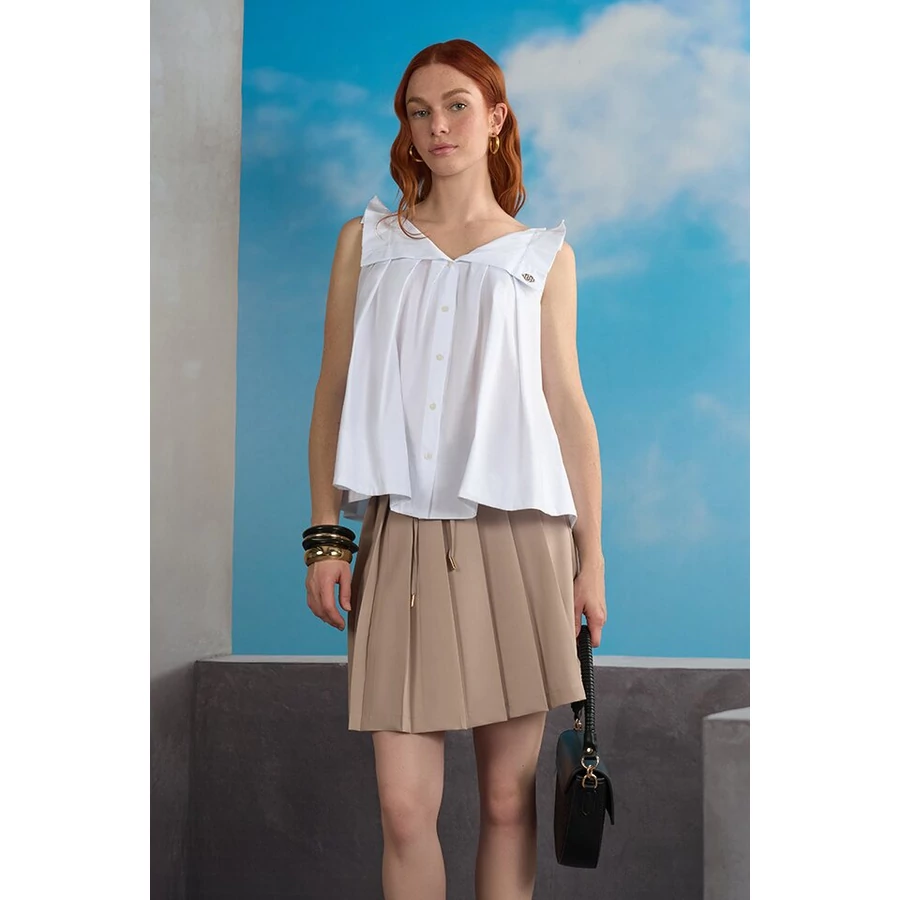Bézs elől rakott miniszoknya, kényelmes nyári viselet