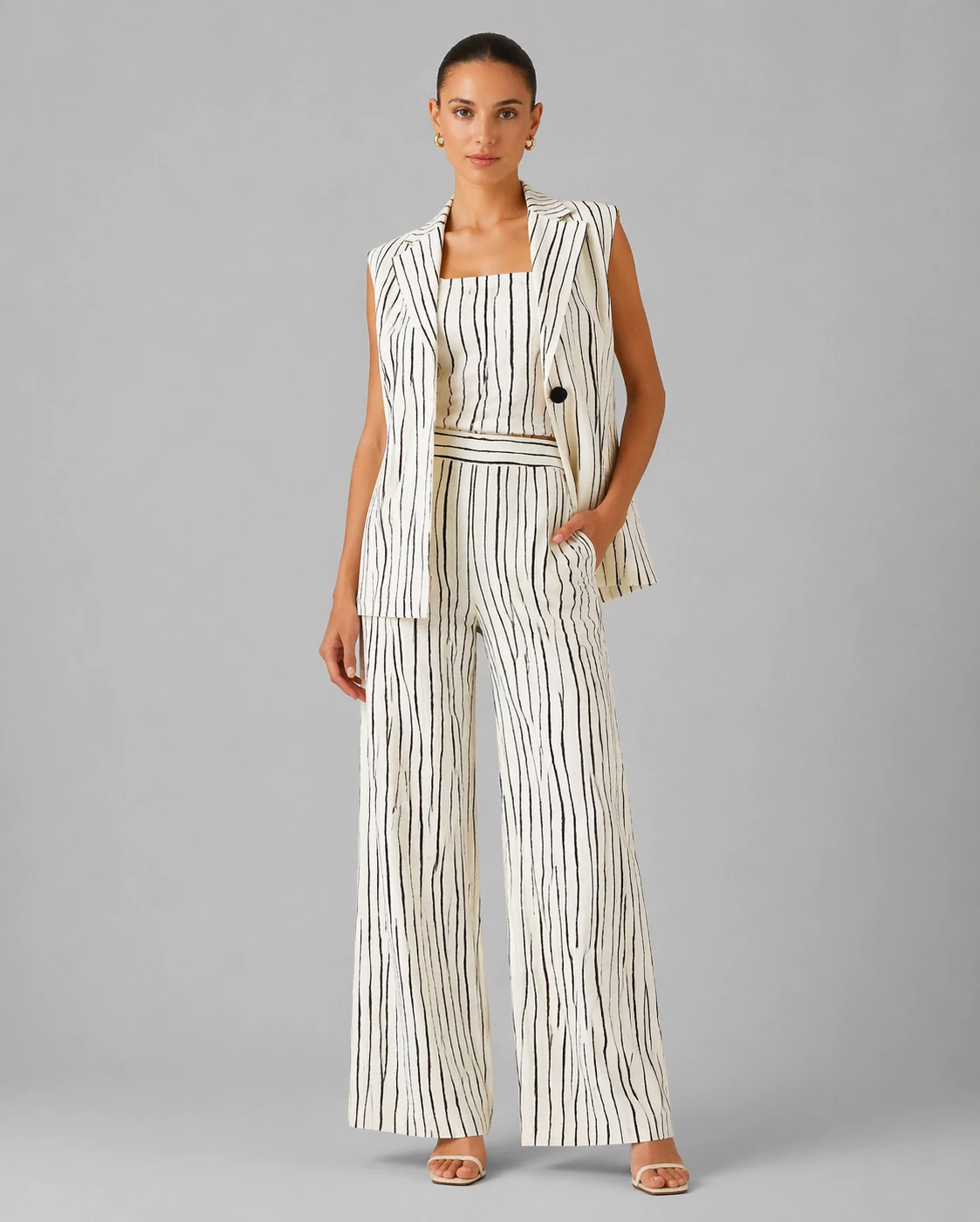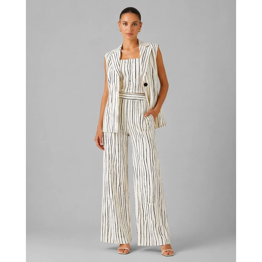 A Rinascimento csíkos top letisztult, mégis nőies alapdarab, amely tökéletesen illeszkedik a nyári gardróbba. A vékony pántok és a testhez simuló fazon kiemelik az alakot, míg a függőleges csíkok optikailag nyújtják a sziluettet.