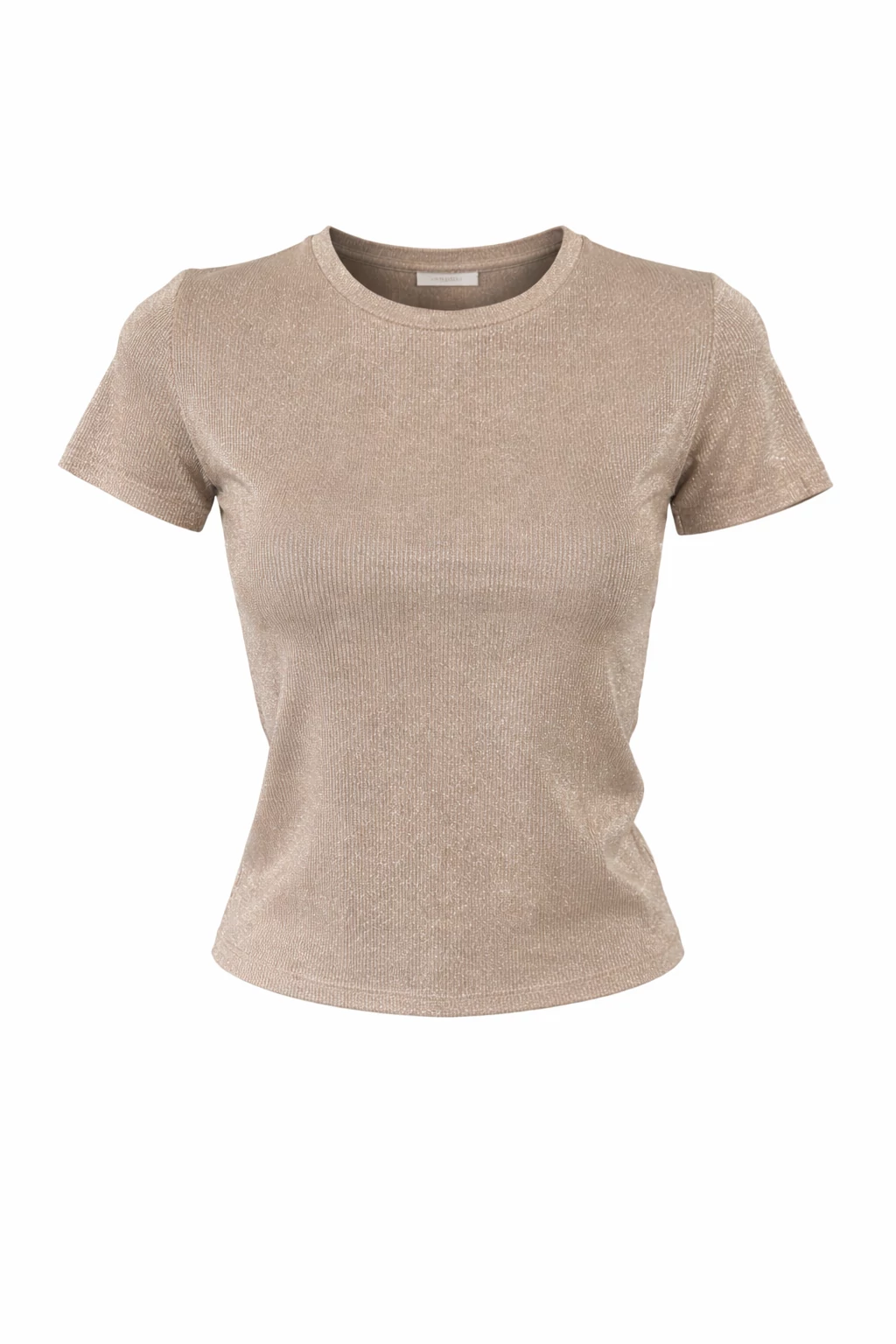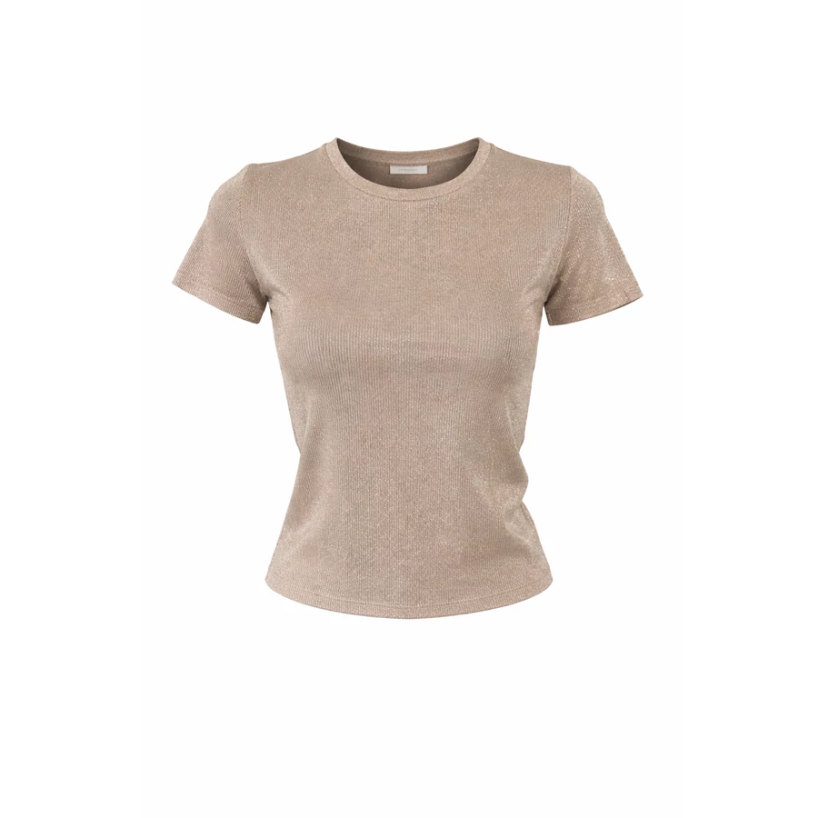 Rövid újjú vilűgos bézs póló fém szálazással.