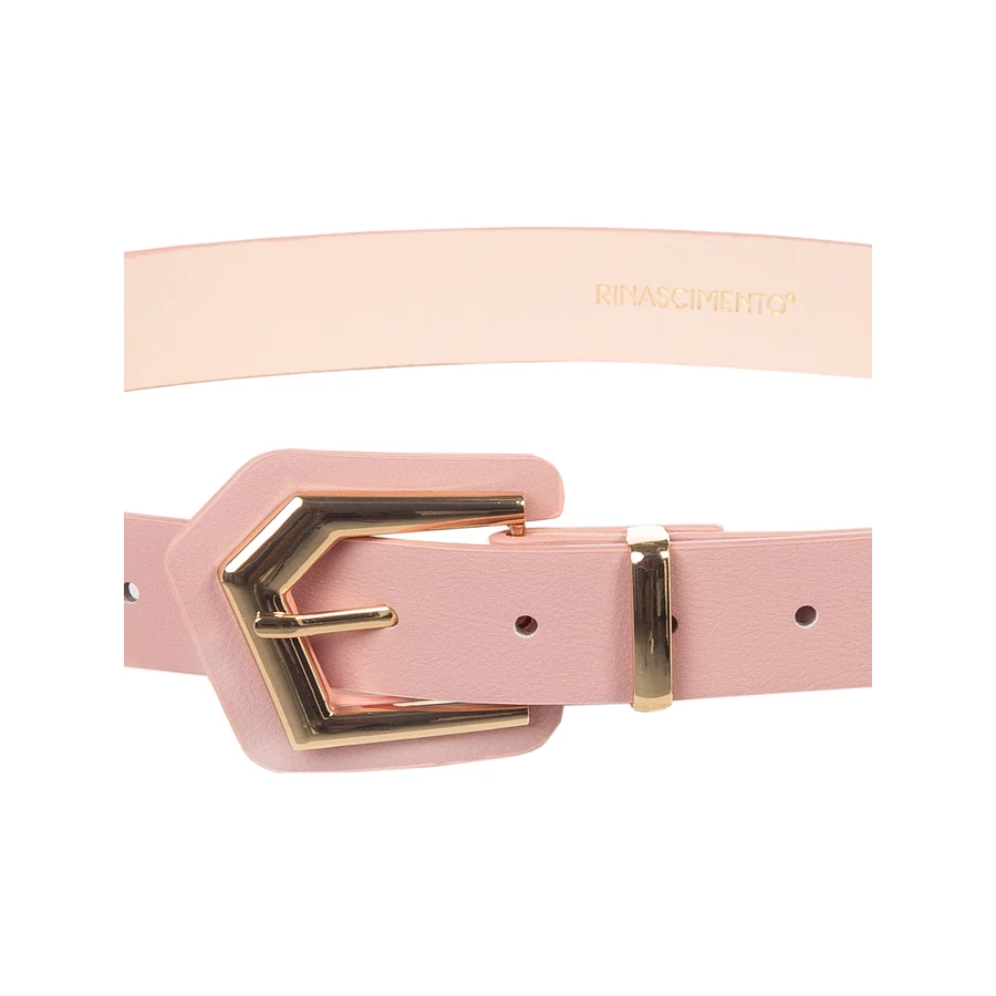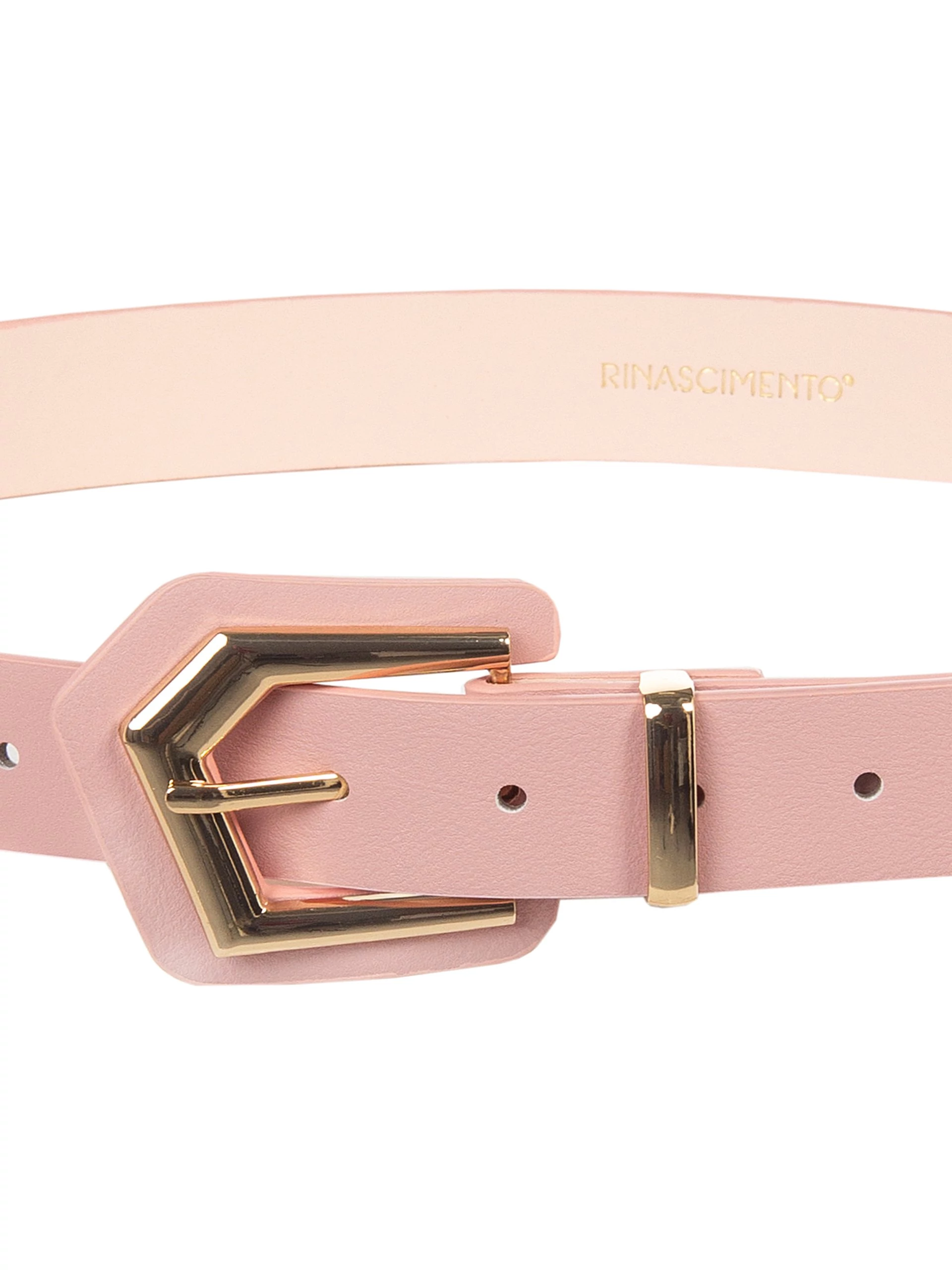 Elegáns pasztell rózsaszín női öv arany színű csattal, amely finom kiegészítője a nőies és alkalmi szetteknek. Letisztult kialakítása kiemeli a derekat és harmonikusan illeszkedik világos árnyalatokhoz.
