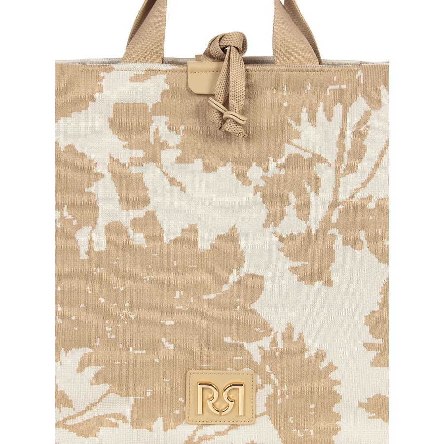 Bézs alapon leveles mintájú női shopper táska, amely tágas kialakításával és stílusos megjelenésével tökéletes választás városi használatra. Kézben és vállon hordva is kényelmes megoldást nyújt.