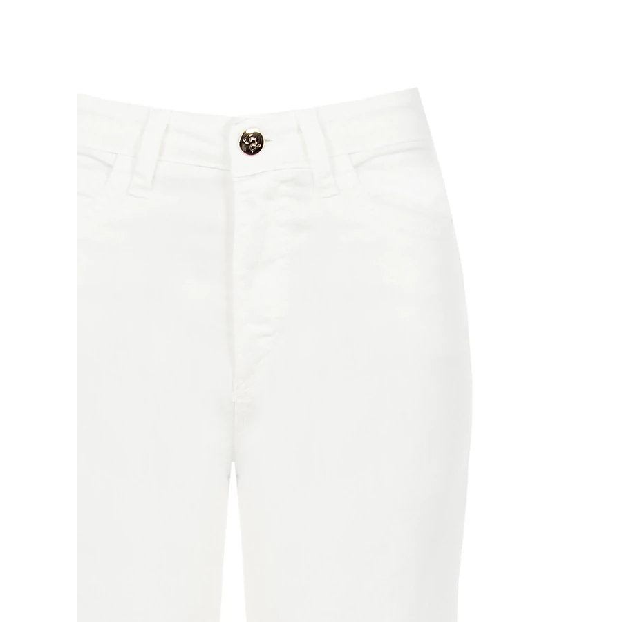 Fehér farmernadrág enyhén bővülő szárral. Klasszikus 5 zsebes fazon, friss és modern megjelenést biztosít. Tökéletes választás irodai viselethez, alkalmi eseményekhez vagy stílusos hétköznapi megjelenéshez.