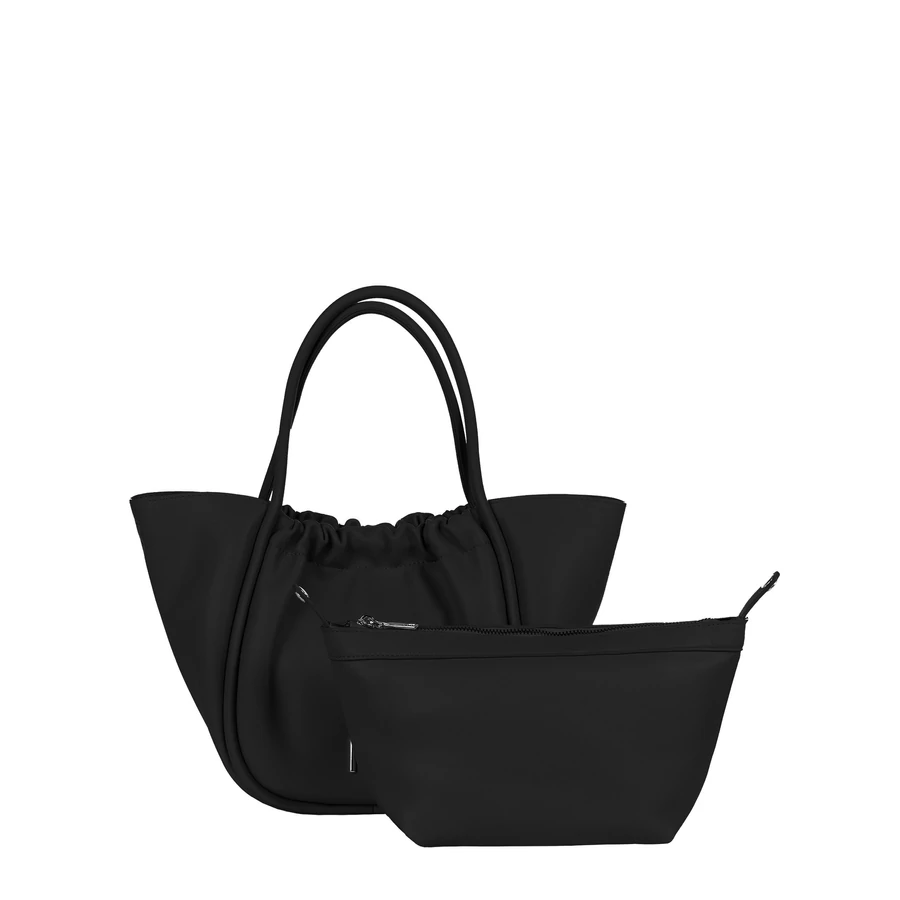 Fekete női kézitáska strukturált, bőrhatású anyagból, letisztult vonalvezetéssel. Elegáns és időtálló darab, amely tökéletes választás városi, irodai és alkalmi megjelenésekhez egyaránt.
